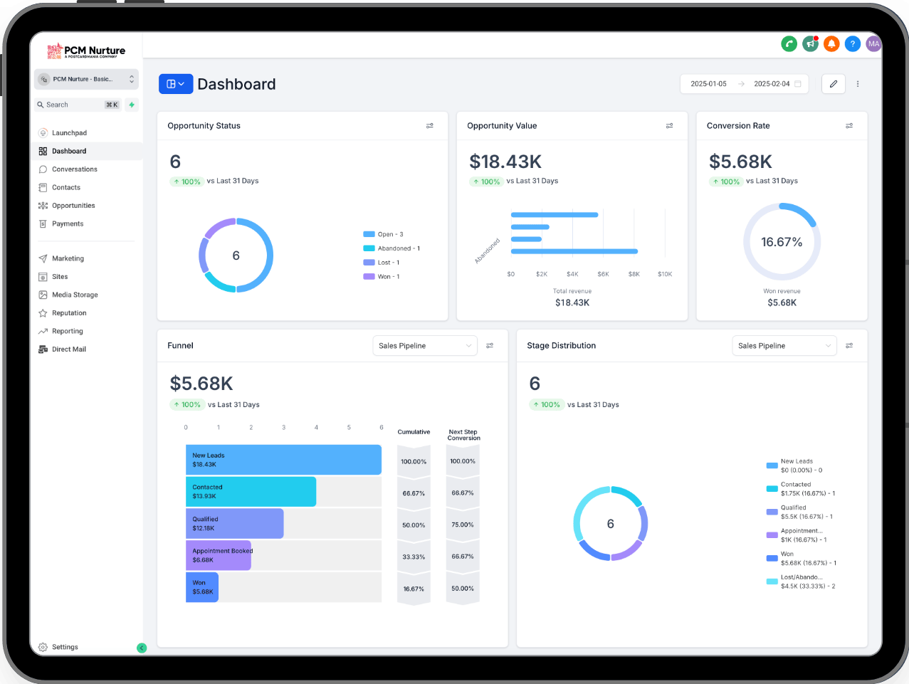 Our CRM (Customer Relationship Management) system automatically follows up with new leads via Email, SMS and Direct Mail, generating more revenue for your business, effortlessly.